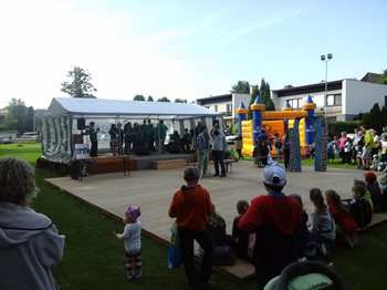 Farní den byl tradičně zahájen mší svatou od 14,00 hod., kterou celebroval P.Jan David. Po mši sv. zahrála k poslechu i tanci Radostínská dechovka, která je složená z mladých hudebníků a koncertuje již druhým rokem. Následovalo pěvecké vystoupení farní scholičky předškolních zpěváčků a hned po nich školní děti zahrály krásnou pohádku se zpěvy s názvem Tři bratři. Po divadle vystoupila farní schola Nathanael mladých hudebníků a zpěváků s nádherným koncertem křesťanských skladeb. Pozdní odpoledne a večer zahrála k poslechu i tanci hudební skupina JÁSALKA BAND z Nové Vsi u Nového Města na Moravě. Celého odpoledního programu se zúčastnilo minimálně 350 velice spokojených diváků. Nejvíce svou spokojenost projevovaly děti, pro které byly po celé odpoledne připraveny hry a soutěže a kde dostávaly drobné ceny a dárky. Mimořádně frekventovaný byl zejména skákací hrad, jež byl po celé odpoledne doslova obležen dětmi a ukončení skákání bylo až při západu slunce. Chceme poděkovat krajské organizaci KDU–ČSL za bezplatné zapůjčení skákacího hradu a už se těšíme na další akci.